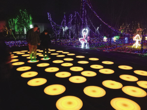 邁入這個流光溢彩的世界,變化莫測的燈光閃爍,恍若穿梭在時光中,驀然回首,那人正在燈火闌珊處。走在“愛情路”上,品味著愛情的甜蜜;徜徉在“財富道”上,憧憬著事業的輝煌;漫步在“吉祥道”上,祝福著家人的吉祥安康。一路上,各種眼花繚亂撥動著心弦,在音樂跳石上,用腳步彈奏,坐上彎彎的月亮上蕩秋千……