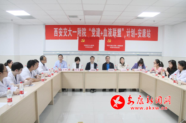 西安交通大學第一附屬醫院血液內科黨支部書記、主任醫師賀鵬程教授和安康市中心醫院黨委書記王曉春出席會議并致辭。安康市中心醫院部分黨支部書記、委員,西安交大一附院血液內科黨支部有關人員參加儀式。