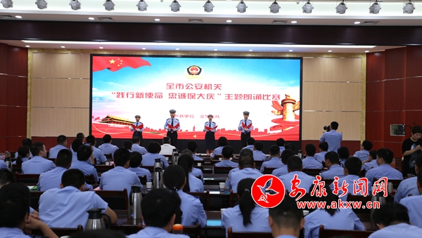 本網(wǎng)訊 (記者 牟慶紅 通訊員 周瑞儒 吳友倫)為深入學(xué)習(xí)貫徹習(xí)近平新時(shí)代中國(guó)特色社會(huì)主義思想和黨的十九大精神,深化“踐行新使命、忠誠(chéng)保大慶”實(shí)踐活動(dòng), 6月27日,市公安局舉辦了全市公安機(jī)關(guān)“踐行新使命、忠誠(chéng)保大慶”主題朗誦比賽。市局機(jī)關(guān)、13個(gè)縣分局、交警支隊(duì)、教育訓(xùn)練支隊(duì)16支代表隊(duì)參加比賽,市公安局各部門(mén)負(fù)責(zé)人及民警共計(jì)180余人參加了活動(dòng)。