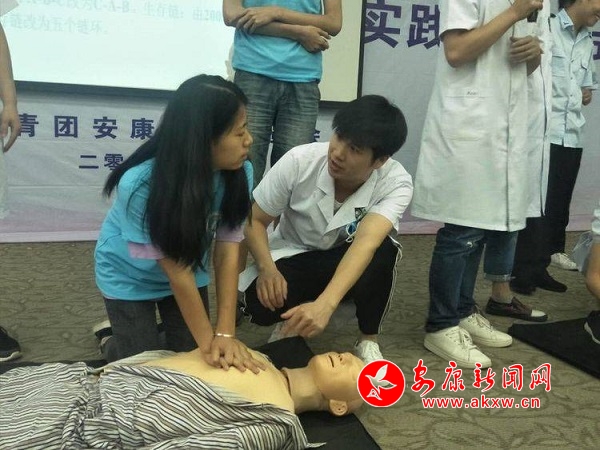 活動現場,由專業醫務人員為師生講解急救的運用方法和技巧,現場演示正確的心肺復蘇、人工呼吸等急救措施,并讓學生們親自體驗急救。本次活動旨在讓大學生更加直觀地認識“急救”的含義,學習急救知識。通過本次培訓,也希望各位高校學生,在危機來臨之際不要慌張,及時運用學到的急救知識施救并及時撥打“120”,為生命爭取救援時間。