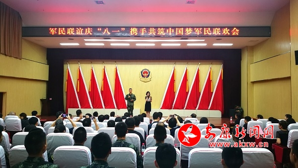 在聯誼會現場,由市發改委機關黨委和武警安康支隊聯合舉辦的“軍民聯誼慶八一,攜手共筑中國夢”主題活動拉開帷幕,開篇詩朗誦《軍人選擇》讓大家融入到從軍光榮、夢想偉大、青春無悔的美好祝愿中,武警戰士匕首操表演贏得陣陣掌聲,《厲害了,我的國》集體誦讀鏗鏘有力,《為了誰》的男女合唱詮釋了軍人榮譽……通過男聲獨唱、軍地合唱、樂隊獻唱、集體誦讀等豐富多彩的文藝形式,大家在激昂、團結、奮進的氛圍中感受和平時期祖國的強大和輝煌,攜手把活動氣氛一次次推向高潮。