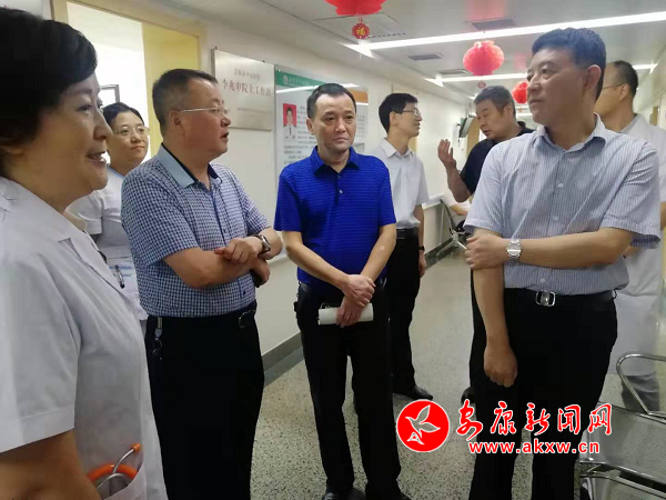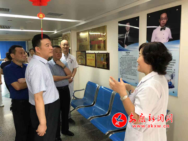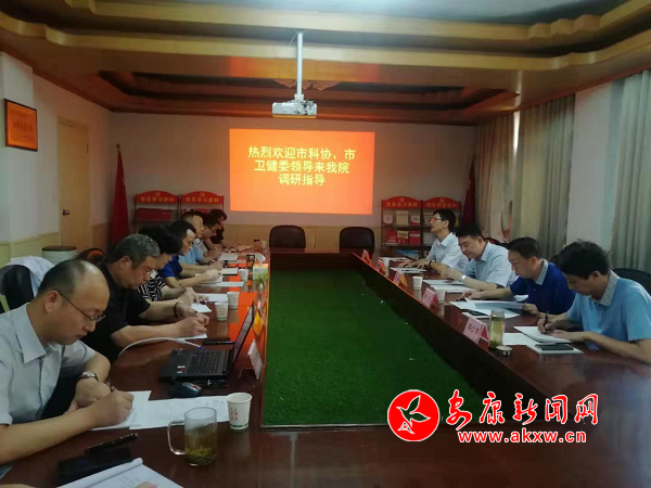 本網(wǎng)訊 為夯實全市醫(yī)學(xué)會及各分會發(fā)展協(xié)作工作,8月2日,安康市科協(xié)黨組書記、主席謝康,市科協(xié)黨組成員、秘書長葉榮斌、安康市衛(wèi)健委副主任楊彬、安康市保健辦主任陳少甫一行前往安康市中心醫(yī)院調(diào)研指導(dǎo)院士工作站、醫(yī)學(xué)會改選等工作開展情況,醫(yī)院黨委書記王曉春、黨委副書記、院長茹甫毅陪同調(diào)研。