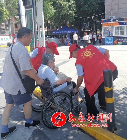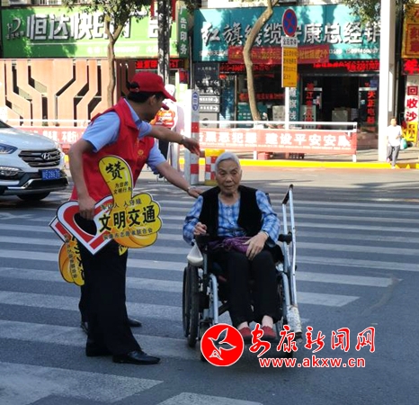 活動中,志愿者們頭頂炎炎烈日,堅守在十字路口的的八個拐角,身穿紅馬甲,手舉“為您文明行為點贊”標識牌,對騎摩托車未帶頭盔、行人闖紅燈、不走斑馬線亂穿馬路等不文明行為主動上前勸導制止。對通過路口行動不便的老人、小孩、殘疾人等需要幫助的人群,主動攙扶,扮演安全護駕使者,護送他們安全通過路口,善意舉動贏得了過往車輛駕駛員的理解與讓行,更贏得了路過市民群眾頷首贊許。
