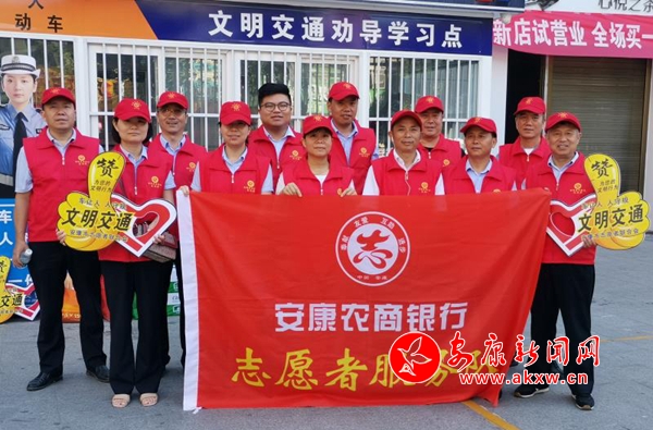 為扎實推進“車讓人•人守規”文明交通實踐行動,進一步鞏固文明交通活動成果,助推省級文明城市創建。從8月13日開始,安康農商銀行組織全行志愿者服務隊在影劇院十字等交通路口集中開展“車讓人•人守規”為主題的文明交通勸導活動,結合影劇院十字車流、人流密集的交通實際,組織全行近40名志愿者在影劇院十字路口,分四班輪流開展“車讓人•人守規”文明交通勸導。
