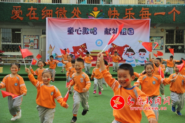 隨后,“我愛北京天安門”、“大中國”、“祖國祖國我愛你”、“紅星閃閃”稚嫩的歌聲、生動的表演,表達了孩子們對祖國70華誕的美好祝福;“一二一”“立正”“稍息”“向右看齊”挺拔的軍姿、整齊的動作、剛勁的一招一式,贏得了老師和小朋友們陣陣掌聲和歡呼聲,將活動不斷推向高潮。