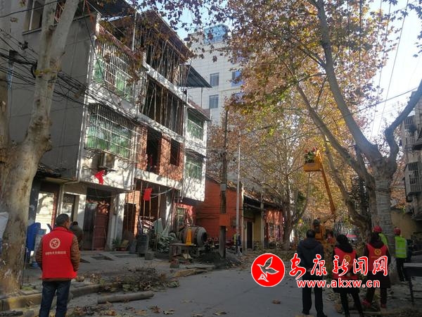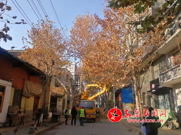 地處大北街社區轄區的大、小北街,民房高低錯落,很多房屋都是老式磚木房。為了凈化空氣、美化環境而在道路兩邊種下的梧桐樹,幾十年過去,街道兩邊綠樹成蔭。然而,梧桐的樹枝與電線、房屋相互纏繞,過度的“親密接觸”嚴重影響了居民室內采光,同時也成為了房屋安全隱患的一大原因。
