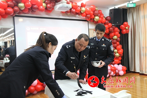 活動在雄壯有力的大合唱《人民警察之歌》中拉開序幕,詩朗誦《新年,你好!》,用詩行傳遞濃濃的節日祝福;女生小合唱《年輕的朋友來相會》,輕快的旋律,甜美的歌聲,瞬間把大家又拉回了那些青蔥歲月;崔銳利副局長一首《把根留住》獨唱,聲情并茂,把活動推向高潮;王鵬支隊長書法表演《納福迎新》,筆勢雄奇,姿態橫生,讓從警的初心從道路向筆尖延伸,即興吹奏《蘆笙戀歌》,蘆笙悠揚,宛如天籟,令人陶醉;舞蹈《舞有規行有矩》,將遵規守法融入舞蹈表演;獨唱《拉著中華媽媽的手》,婉聲悅耳,情真意切,祝愿祖國母親明天更美好;小合唱《走進新時代》,老歌新唱,踏著新時代的東風我們整裝再出發;最后,活動在大合唱《我和我的祖國》中落下帷幕。eJW安康新聞網