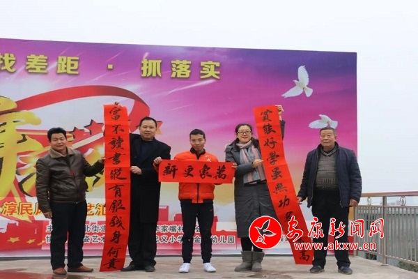 在晏臺村活動現場,幾張桌子一字排開,上面整齊擺放著筆、墨、紙、硯,來自區內的書法愛好者們“老”“少”合作,神情專注,揮毫自如,橫撇豎捺間,濃濃的年味躍然紙上。“正打算買春聯,這不免費春聯就在家門口,實在太好了,我要把它貼在大門口!”一位村民拿著剛“出爐”的春聯,喜上眉梢。義寫期間,李家嘴村貧困戶李輝生的兒子李強,還請書法大師們書寫了自己創作的春聯——不讀書縱有銀錢身何貴,貧能好學雖無功名志氣高 。“人窮志不窮,我要用這個來鼓勵我們好好干事,好好為自己的小家打拼。”chW安康新聞網