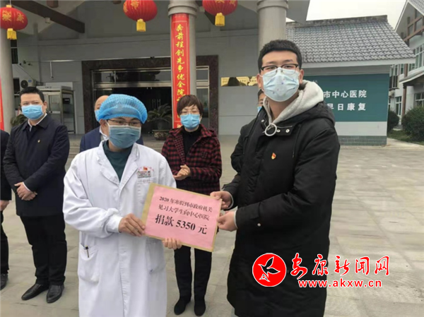 本網訊(記者 董良軍 通訊員 徐偉)2月5日,2020年寒假到市政府機關見習大學生們向安康市中心醫院第三醫院捐助防控疫情專項善款5350元,用于本次疫情防控相關工作。大學生代表楊洋參加了捐贈儀式。