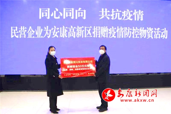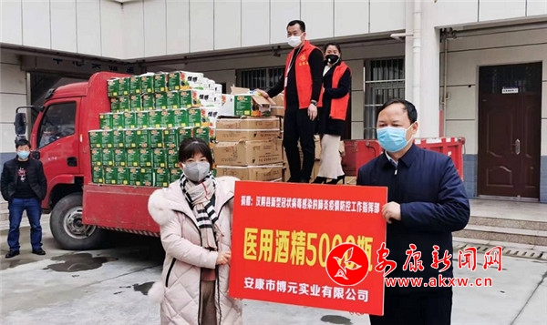 2月1日,安康市博元實業有限公司為高新區慈善協會捐款50萬元,并捐贈價值41000元的酒精2000瓶/500毫升,用于支持高新區各社區和51個村的抗疫工作。同日,向漢陰縣慈善協會捐款20萬元,捐贈價值118900元的酒精(200桶/2升,5000瓶/500毫升),由漢陰縣疫情防控工作指揮部統籌安排用于漢陰縣疫情防控工作。