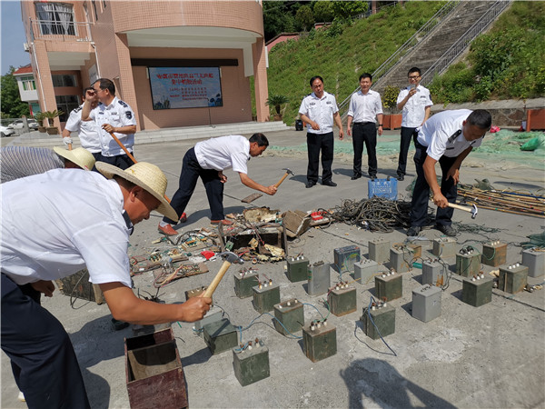 5月22日上午,陜西省農業(yè)農村廳漁業(yè)漁政局、安康市農業(yè)農村局在瀛湖海事碼頭聯合開展禁用漁具及“三無”漁船銷毀活動,集中銷毀了570余副“絕戶網”共1萬余米,銷毀電魚設備21套。