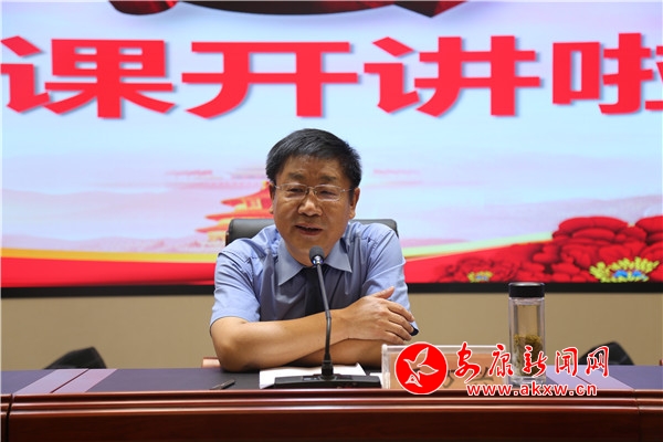 最后,結合市委組織部安排部署的“黨課開講啦”活動,市院黨組書記、檢察長王萬興以“品味信仰味道、爭做合格黨員”為主題,從堅定共產主義信仰、堅定高舉習近平新時代中國特色社會主義思想偉大旗幟、堅定“四個鐵一般”的干部隊伍建設要求等三個方面闡述了什么是共產黨員信仰,如何品味共產黨人的“五味”信仰,如何堅定中國特色社會主義信念,教育檢察機關的共產黨員必須深入學習貫徹習近平新時代中國特色社會主義思想,錘煉忠誠干凈擔當的政治品格,全心全意為人民服務,做好、做優、做實我們的本職工作,努力爭做合格黨員,隨時準備為黨奉獻一切,給全體與會黨員干警上了一堂生動的黨課。