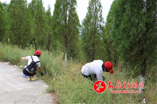活動中,黨員們頭戴小紅帽、身穿紅馬甲,經過有序分工,及時投入到了志愿服務中。黨員們對香溪洞沿線至牛嶺村主干道的果皮箱、馬路防護欄、便民設施等進行了清潔擦拭;對公路沿線護坡、綠化林帶地面白色垃圾和雜物進行了清理。通過半天時間的環境衛生整治,周圍環境煥然一新,為過往群眾和游客營造了整潔的活動環境。
