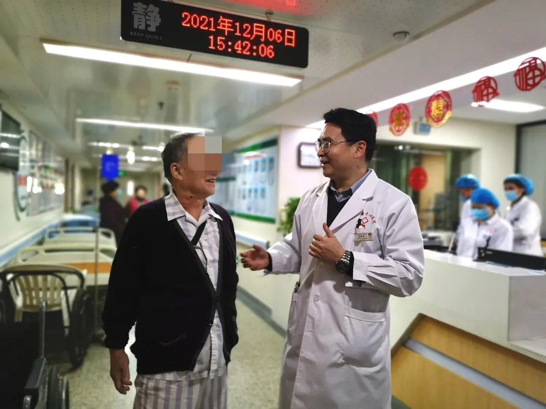 當記者再次見到王大爺時,他剛睡醒,很久沒有平躺安穩地睡一覺了,起來后在病房走了幾個來回也不覺得累,在一旁看著的主刀醫生沈桂冬終于放下心來。