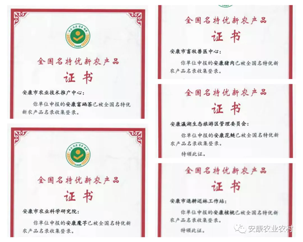 我市圍繞農業五大特色產業,加快建立標準體系、質量體系和品牌體系。“安康豬”“安康錢魚”“安康花鰱”等三個農產品獲國家農產品地理標志登記。“安康富硒茶”上榜100個以地理標志為代表的區域公用品牌,成為唯一入選的陜茶品牌,并入選獲評最具經營力茶葉公用品牌,品牌價值35.16億元,排名全國第20,陜西第一。“安康漢水魚”成為陜西唯一一個水產品區域公用品牌。“安康富硒茶”“安康魔芋”等五個農產品入選2021年首批全國名特優新農產品名錄。2021年,全市新獲得“兩品一標”農產品認證45個,其中綠色食品認證32個、有機農產品10個、地理標志農產品3個,全國名特優新農產品8個。