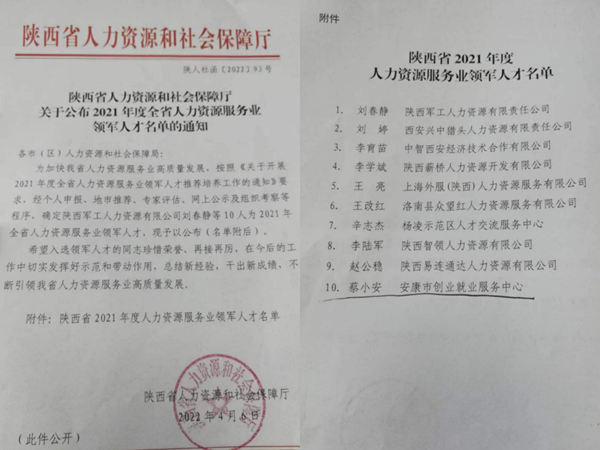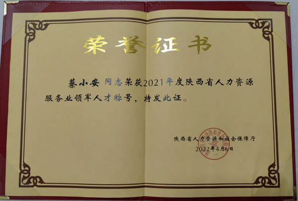 原標題:蔡小安同志榮獲”2021年度全省人力資源服務(wù)業(yè)領(lǐng)軍人才”稱號