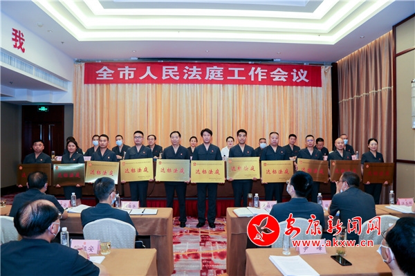 會議宣讀了省法院《關于全省第一批“示范法庭”“達標法庭”評定結果的通報》和市中院《關于命名漢濱區人民法院恒口中心人民法庭等10個人民法庭為司法規范化人民法庭的決定》,并向受表彰的人民法庭授牌。