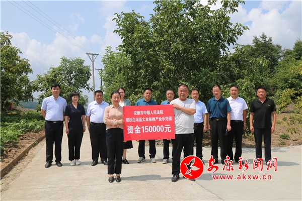 本網訊(通訊員 朱順 張富倉)7月13日,安康中級人民法院黨組書記、院長劉娟,中院黨組副書記、副院長劉來剛,中院黨組成員、政治部主任羅艷麗一行前往白河縣大雙核桃產業示范園開展調研幫扶活動,并代表中院向該園區捐贈幫扶資金15萬元。