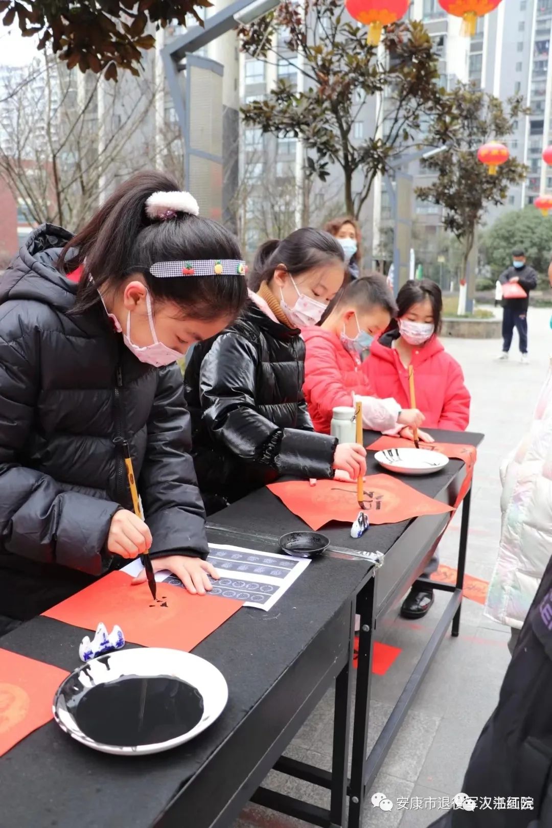 活動現場,翰墨飄香,其樂融融。書法老師鋪開紅卷,蘸好筆墨,筆鋒婉轉、妙語成雙。活動中,在安康市退役軍人書畫院的書畫家和培訓機構的老師們指導下,孩子們也提筆揮墨,興趣盎然。一幅幅春聯帶來了年的氣息,不同風格的一個個福字,給人們送去了滿滿的祝福,大家潑墨揮毫,帶著辭舊迎新的美好祝愿,為即將來臨的春節增添了濃濃的喜慶氛圍。