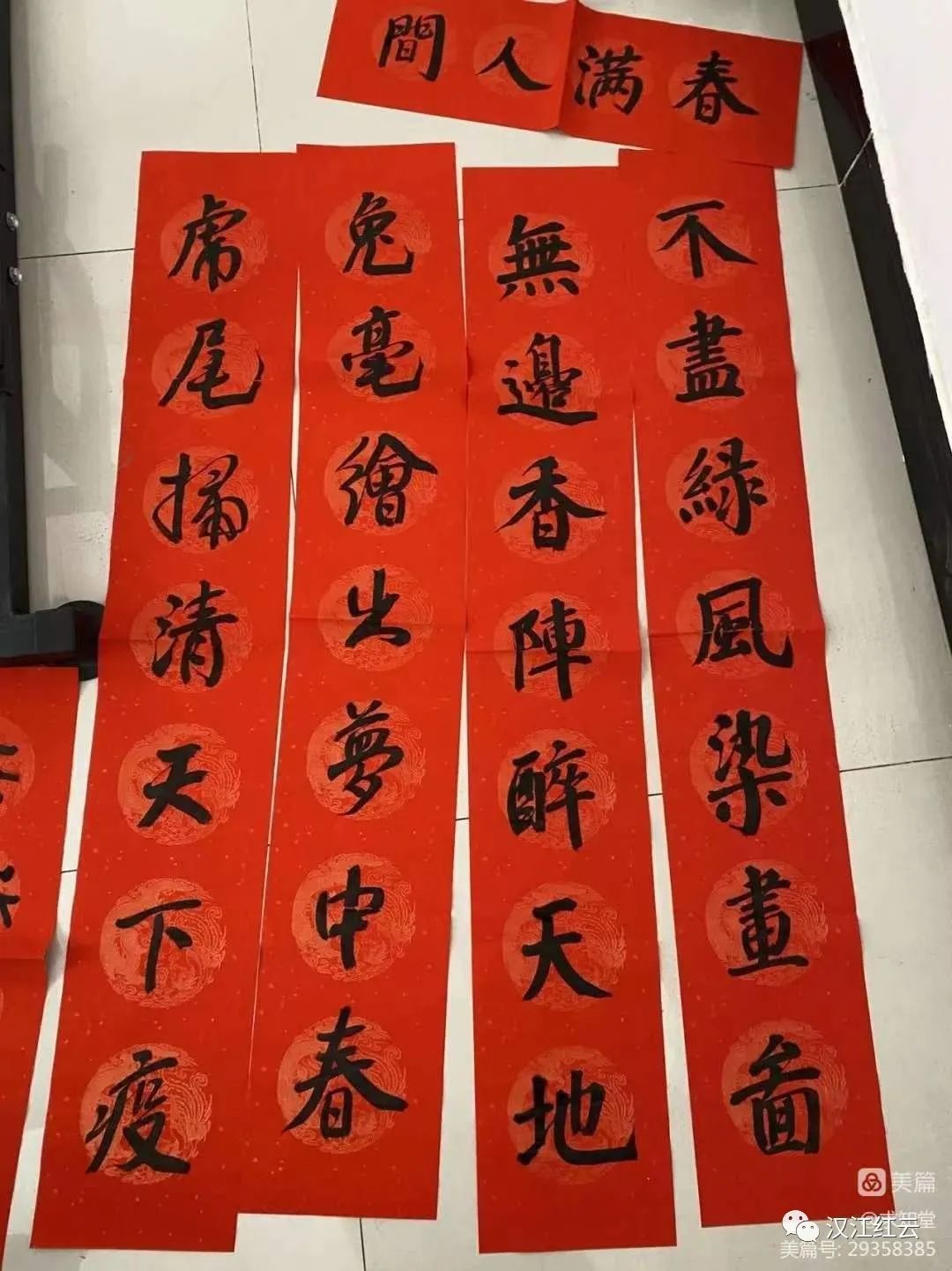 此次義寫春聯活動還走進了漢濱區早陽鎮,“朱紅春帖千門瑞,翠綠柳風萬戶新”"盛世紅梅迎雪舞,新時玉兔踏春來”,一幅幅紅彤彤的春聯給早陽鎮干部和群眾帶來迎春的喜悅。