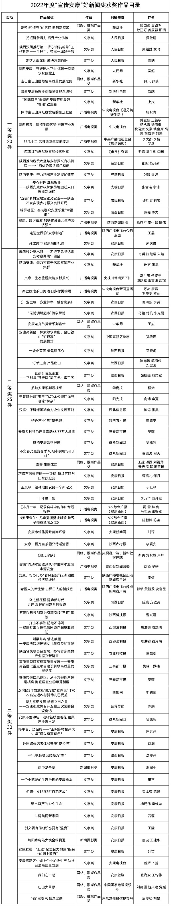 為充分發揮“宣傳安康”優秀新聞作品示范作用,進一步激勵廣大新聞工作者奮發有為,爭先創優。經過各申報單位推薦,市委宣傳部初審、復審并組織專家定評,評選出擬獲2022年度“宣傳安康”好新聞獎件75件,其中一等獎20件、二等獎25件、三等獎30件。3zu安康新聞網