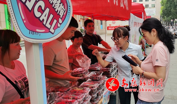 當(dāng)天下午,安康郵政渠道部、江南分公司聯(lián)合瀛湖鎮(zhèn)政府、雙堤社區(qū)、安康學(xué)院外語學(xué)院共同開展第二屆“迎七一”瀛湖楊梅宣傳周活動在金州路郵政廣場如期舉行,12位瀛湖洞橋果農(nóng)帶著850斤楊梅來到活動現(xiàn)場,郵政為現(xiàn)場果農(nóng)精心準(zhǔn)備攤位及微郵付收款碼牌,通過市公司機(jī)關(guān)群宣傳、現(xiàn)場直播、短視頻對外宣傳、朋友圈點(diǎn)贊活動、現(xiàn)場喊麥銷售、郵政職工朋友圈、好友群等多方面宣傳,兩個(gè)小時(shí)幫助果農(nóng)將楊梅銷售一空,廣獲好評。