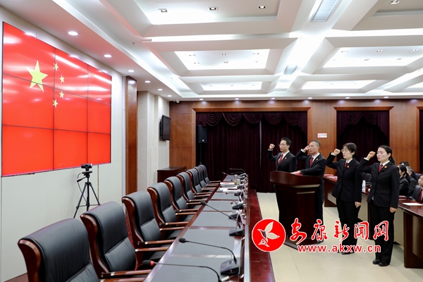 1月14日,安康中院組織新任命的4名員額法官集體向憲法宣誓。宣誓儀式在莊嚴肅穆的氣氛中進行,新入額的4名法官舉起右手,面向國旗,在機關全體黨員干警的見證下,……