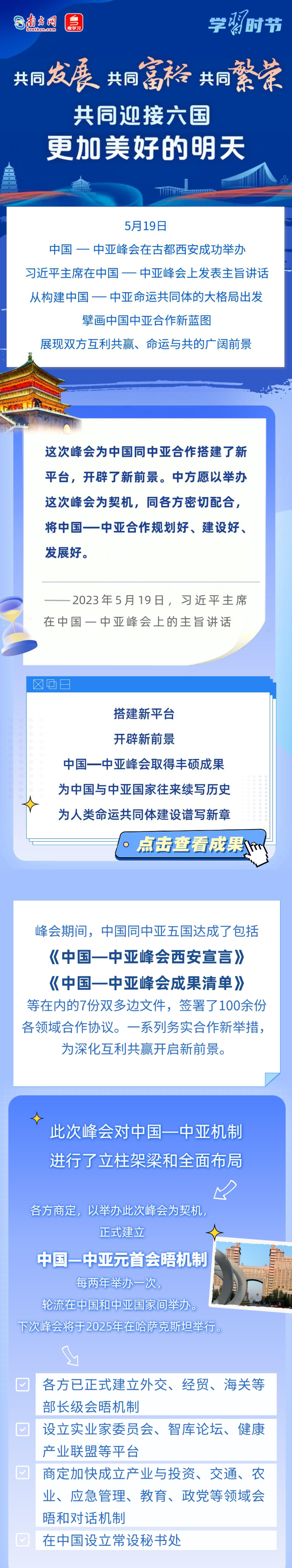 “今天我們在西安相聚,續寫千年友誼,開辟嶄新未來,具有十分重要的意義。”5月19日,習近平主席在陜西西安主持中國—中亞峰會,并發表題為《攜手建設守望相助、共同發展、普遍安全、世代友好的中國—中亞命運共同體》的主旨講話。