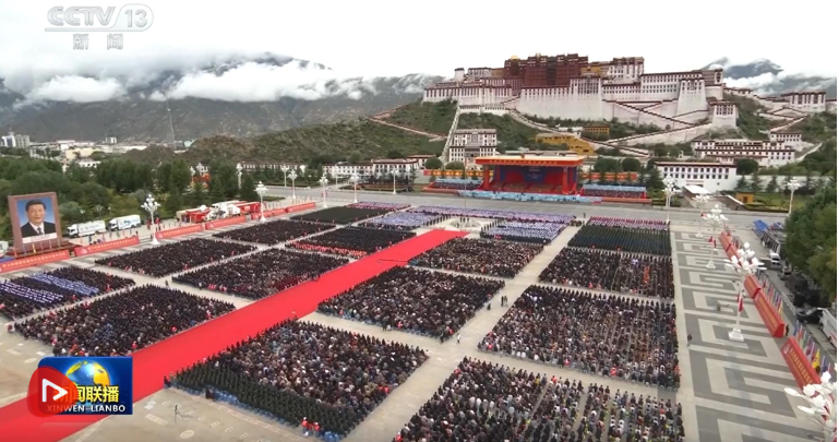21日上午,習近平總書記在拉薩市布達拉宮廣場出席西藏自治區成立60周年慶祝大會,同西藏各族各界干部群眾約2萬人共同歡聚,熱烈慶祝西藏自治區成立60周年。