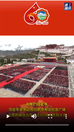 8月21日上午,習近平總書記在拉薩市布達拉宮廣場出席西藏自治區成立60周年慶祝大會,同西藏各族各界干部群眾約2萬人共同歡聚,熱烈慶祝西藏自治區成立60周年。