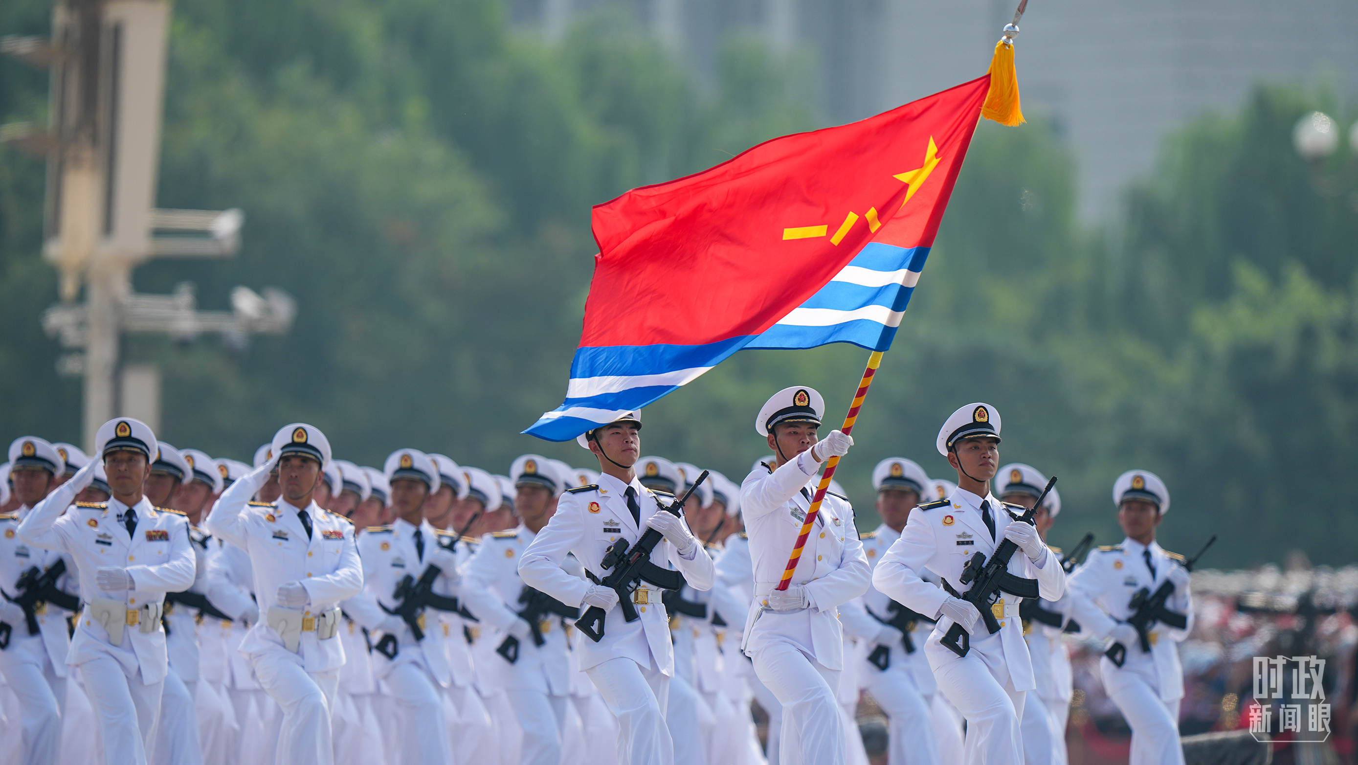 盛大閱兵敬忠魂。80面抗戰英模部隊榮譽旗幟組成的戰旗方隊浩蕩而來,這些戰旗都是從八路軍、新四軍、東北抗聯、華南游擊隊等授稱和命名單位中遴選,每一面戰旗都承載著抗日英雄的犧牲奉獻。戰旗獵獵,鐵流滾滾,與人民英雄紀念碑交相呼應,這是英雄與功勛同在、歷史與現實交融的致敬和告慰。
