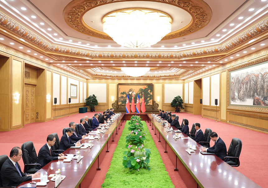習近平指出,中朝是命運與共、守望相助的好鄰居、好朋友、好同志。中朝友誼源遠流長,兩國都是共產(chǎn)黨領(lǐng)導(dǎo)的社會主義國家,有著共同的理想信念和奮斗目標。金正恩總書記來華出席紀念中國人民抗日戰(zhàn)爭暨世界反法西斯戰(zhàn)爭勝利80周年活動,體現(xiàn)了朝方維護二戰(zhàn)勝利成果的堅定意志,也為中朝兩黨兩國進一步發(fā)展友好合作關(guān)系提供了重要契機。