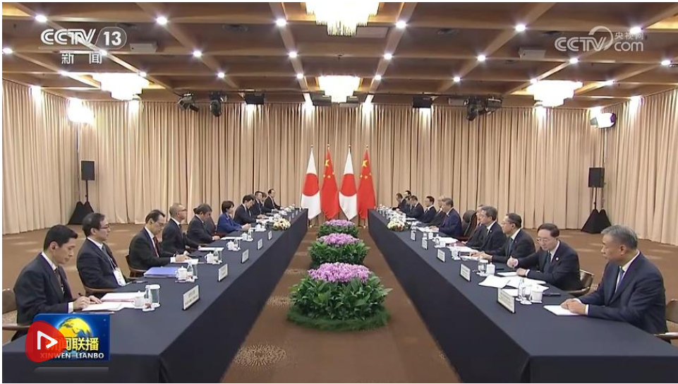 當地時間10月31日下午,國家主席習近平在韓國慶州出席亞太經合組織第三十二次領導人非正式會議期間應約會見日本首相高市早苗。