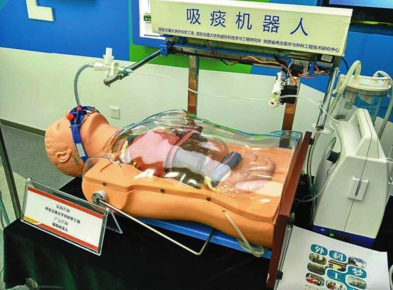 西安交大外科夢工廠研發制造的吸痰機器人。