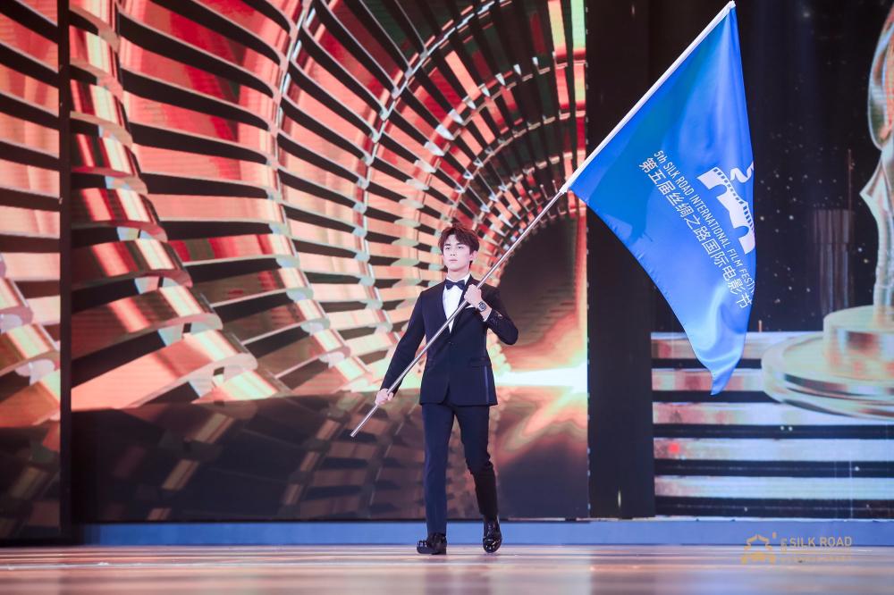 閉幕式尾聲舉行了絲綢之路國際電影節會旗交接儀式,由青年演員吳磊擔任旗手,將會旗交給了下一屆絲路國際電影節承辦城市福建省福州市。(完)