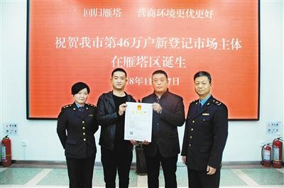 西安市工商局雁塔分局向新登記的第46萬戶市場主體頒發營業執照
