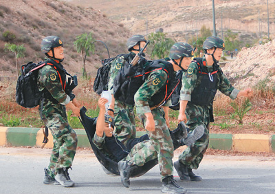圖為5月1日,中國武警代表隊隊員參加“勇士競賽”。 新華社發 EpV安康新聞網