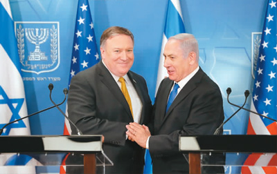 | 圖為4月29日,在以色列特拉維夫,以色列總理內(nèi)塔尼亞胡(右)與美國新任國務(wù)卿蓬佩奧出席聯(lián)合新聞發(fā)布會。新華社/美聯(lián) |