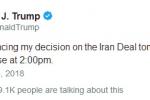 特朗普在推特上表示,即將宣布對伊核協議的決定。 人民網北京5月8日電 (姚麗娟)美國總統特朗普8日凌晨宣布,他將于8日下午2時(北京時間9日上……