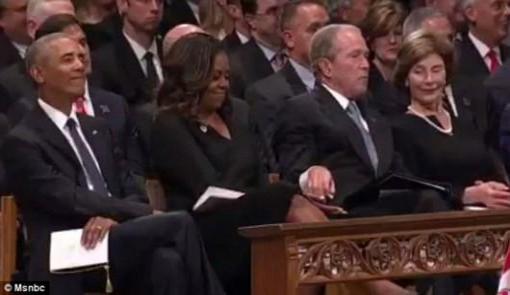 小布什在麥凱恩追悼會上給米歇爾傳糖,美國網(wǎng)友被暖到了
