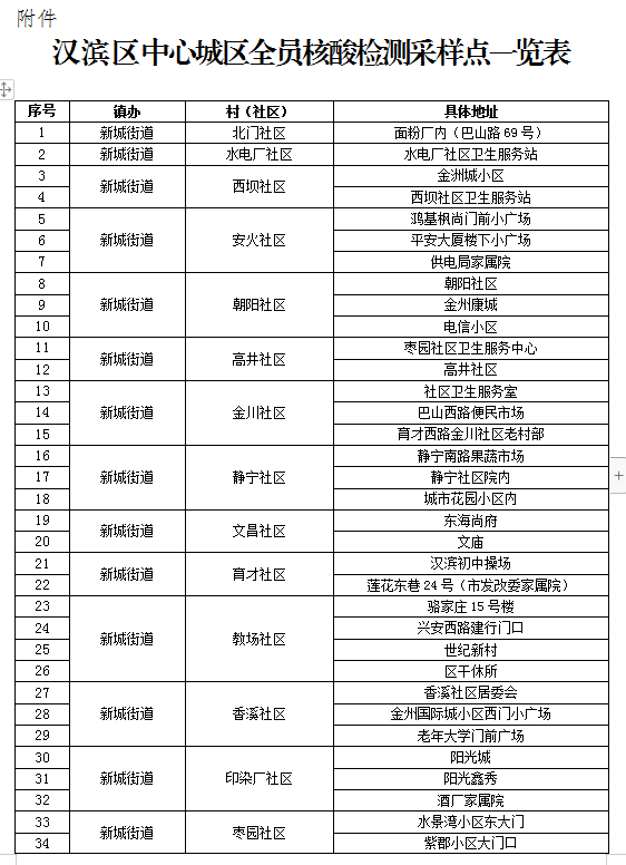 附件:漢濱區(qū)中心城區(qū)全員核酸檢測采樣點(diǎn)一覽表