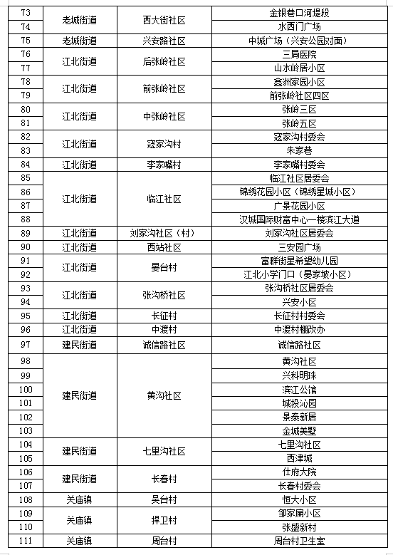 漢濱區(qū)老城街道、建民街道、新城街道、江北街道及關(guān)廟鎮(zhèn)、吉河鎮(zhèn)中心城區(qū)范圍(具體見附件所列村、社區(qū))常住和流動(dòng)人員一律參加核酸檢測。