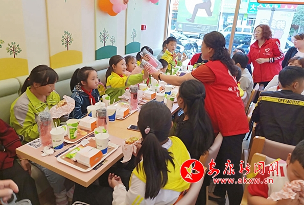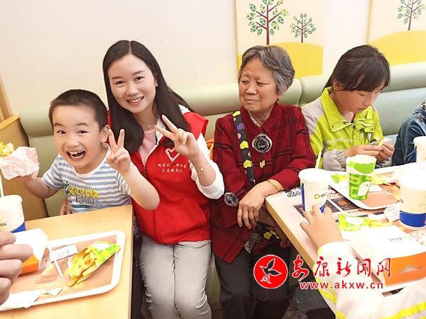 愛心親子餐,志愿者們?yōu)榧议L(zhǎng)和孩子準(zhǔn)備好午餐,看他們吃的津津有味的樣子,大家心里特別的高興。