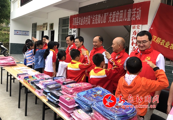 本網訊 (通訊員 張莉)一個嶄新的書包、一個心儀已久的文具盒、一盒書寫未來的鉛筆……每個孩子都應被寵愛,每個夢想都值得去灌溉。為了讓貧困留守兒童也享有同樣美好的節日,六一兒童節一大早,漢陰縣農業農村局領導干部前往幫扶聯系村漩渦鎮東河村,舉行“點亮微心愿、關愛貧困兒童”公益行活動,用實際行動為貧困留守兒童送去愛心,送去歡樂,給他們更多的“精細關愛”,讓夢想、信心與愛重回孩子們的心中。