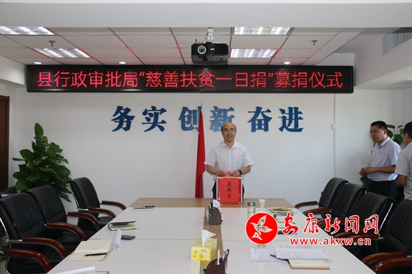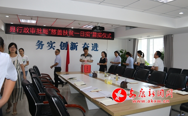 8月29日下午,在縣行政審批局的宣傳發(fā)動下,局領導班子帶頭,全體黨員干部踴躍參與,一些因公出差或公休不能到場的同志也積極響應,慷慨解囊,委托同事代為捐款,表達自己的愛心和對慈善扶貧事業(yè)的支持。