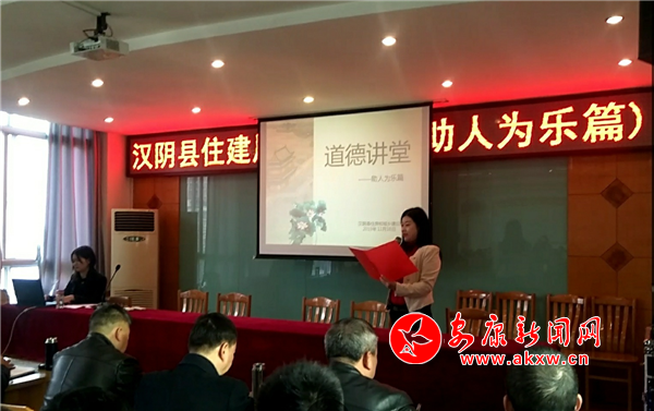 本網訊(通訊員 王磊)為深入學習貫徹習近平新時代中國特色社會主義思想和黨的十九大精神,弘揚社會主義核心價值觀,提高干部職工道德修養和文明素質。11月18日上午,漢陰縣住建局開展了以“不忘初心、牢記使命”、弘揚助人為樂精神為主題的道德講堂活動。住建局全體干部職工共90多人參加了活動。