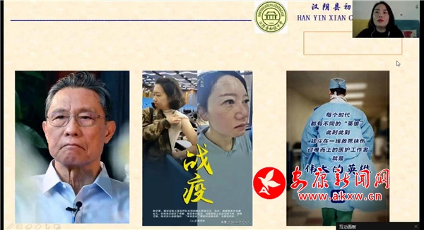 知英雄事跡,共鑄愛國情。該校政教處羅主任精心制作的戰‘疫’視頻、圖文等內容,全面再現社會各行各業在抗疫斗爭中的先進典型,通過鮮活的素材,讓全體師生看到了中華兒女的團結精神、科學精神,體會到了中國速度、中國效率、中國力量、中國優勢,促使學生樹立正確的世界觀、人生觀、價值觀。