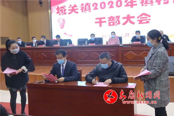 為確保來年工作更好的完成,鎮主要領導同轄區村、社區就2020年黨建、黨風廉政建設、脫貧攻堅、生態環保、信訪維穩、安全生產等工作簽訂了目標責任書。