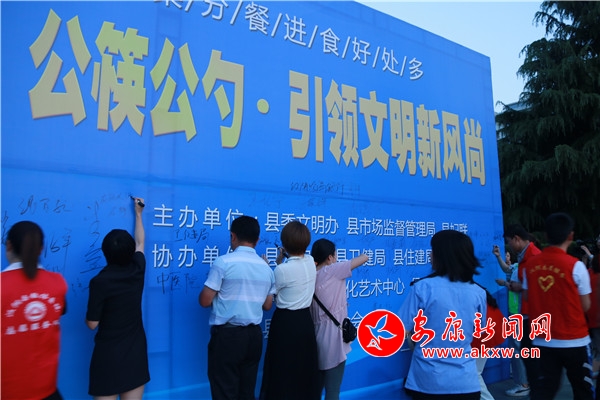 隨后,漢陰縣婦聯為“文明家庭”“最美家庭”“五好家庭”“美麗家園”示范戶代表贈送公筷公勺,各單位志愿服務隊還在簽名墻簽名承諾,踐行“公筷公勺”行動,引領餐飲新風。