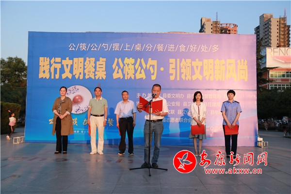本網訊(通訊員 史子章)為深化文明餐桌行動,培育健康生活理念,進一步鞏固提升省級文明縣城創建工作。5月29日,漢陰縣“踐行文明餐桌 公筷公勺·引領文明新風尚”主題活動在鳳凰廣場舉行。